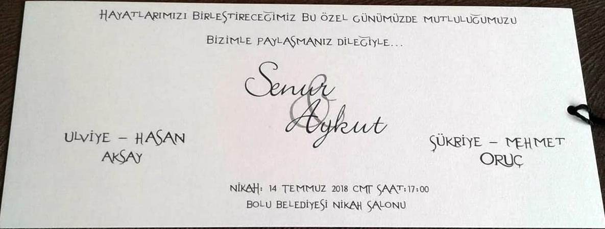 Dokumacılar Köyünden Ulviye-Hasan AKSAY ın kızları Senur AKSAY - Aykut ORUÇ un nikah merasimine köylülerimiz ve sevenleri davetlidir.