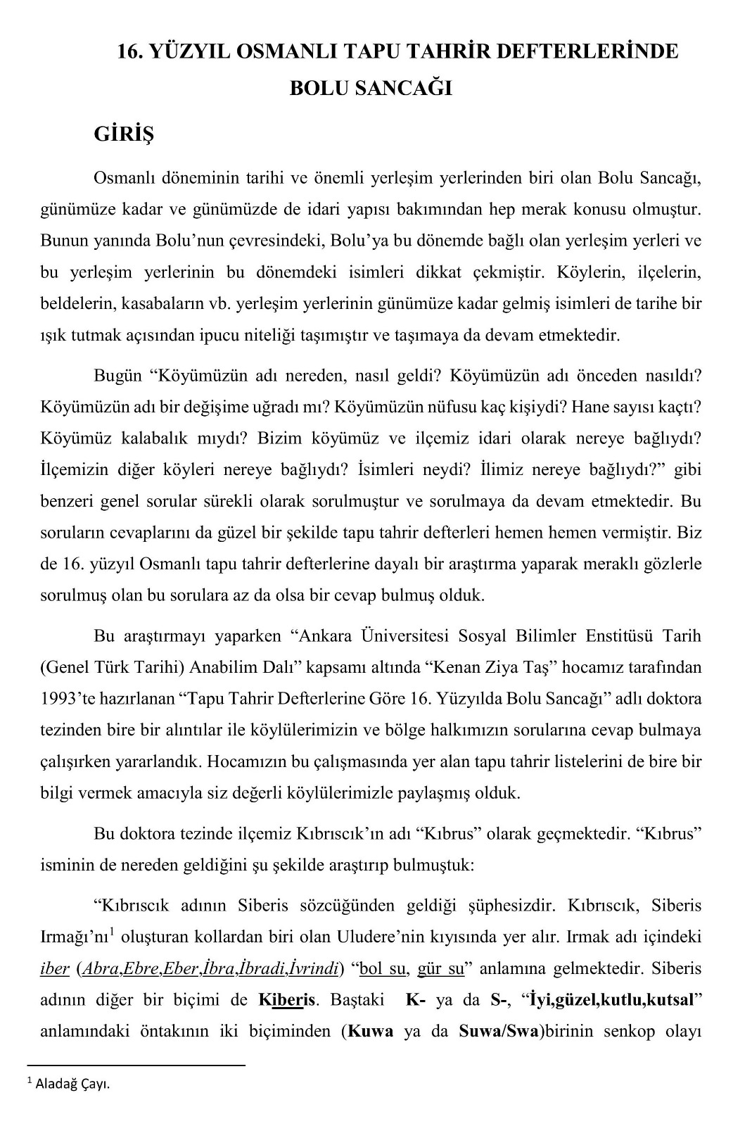 16. YÜZYIL OSMANLI TAPU TAHRİR DEFTERLERİNDE BOLU SANCAĞI - Mehmet İRGE