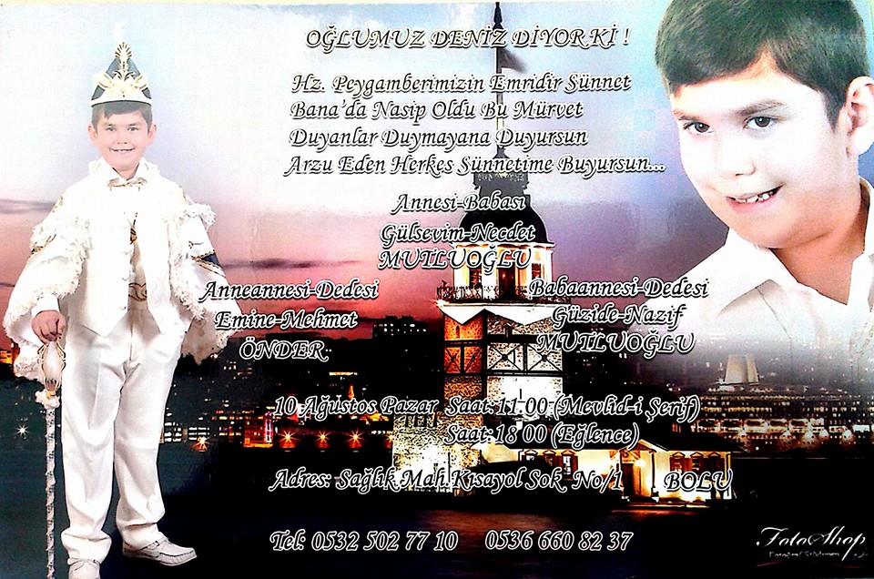 Necdet ve Gülsevim Mutluoğlu'nun küçük oğulları Deniz Mutluoğlu'nun 10 Ağustos Pazar günü sünnet düğünü vardır. Tüm köylülerimiz davetlidir.