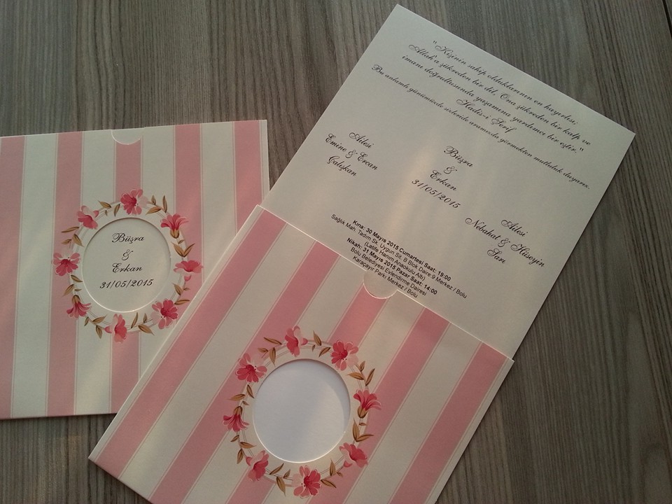 Kına:30 Mayıs 2015 Cumartesi saat 19:00 Sağlık mah.Tadım sok.Uygun Sitesi B blok Dire 9 Merkez / Bolu(Latife Hanım Anaokulu Altı) Nikah:31 Mayıs 2015 Pazar saat 14:00 Bolu Belediyesi Evlendirme Dairesi Karaçayır Parkı Merkez/Bolu