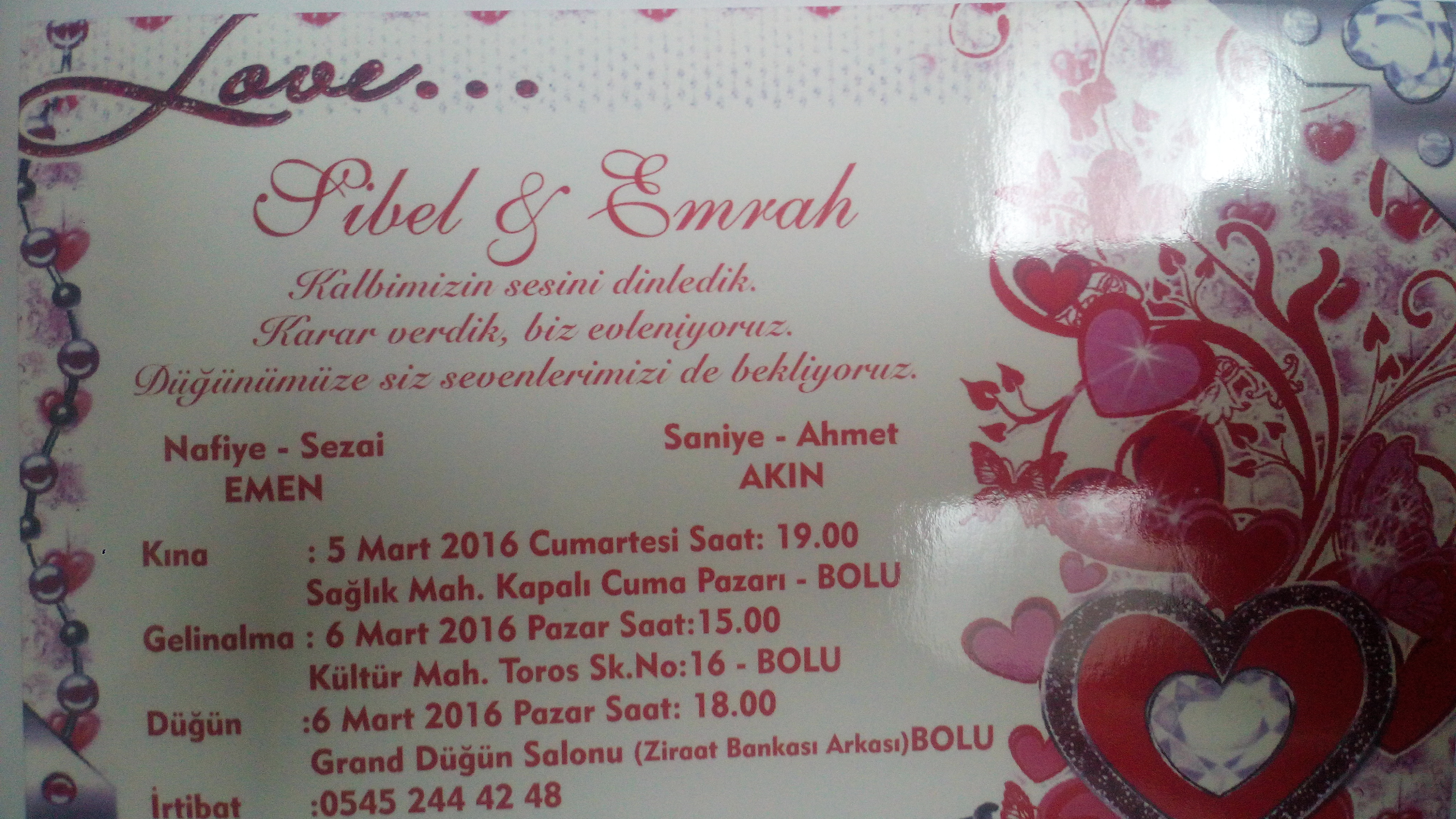 Köyümüzden Saniye- Ahmet AKİN in oğulları Emrah AKİN in düğün merasimlerine bütün köylülerimiz davetlidir.